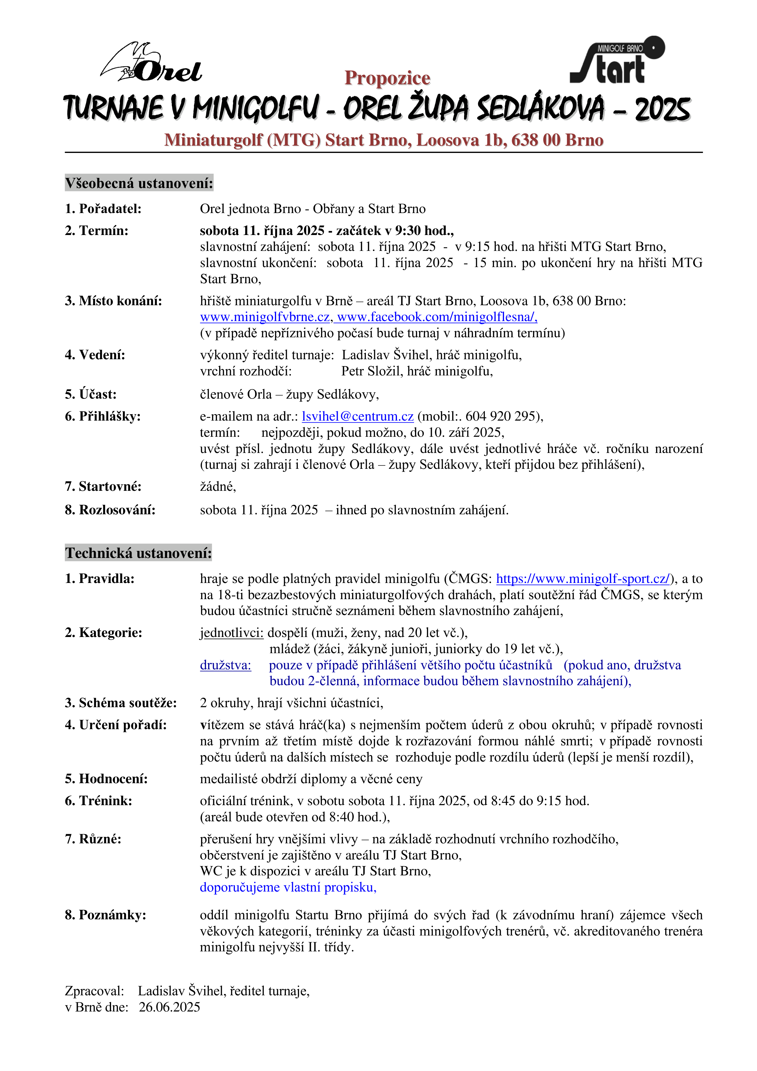 V sobotu 11. října 2025 proběhl tradiční turnaj v minigolfu.